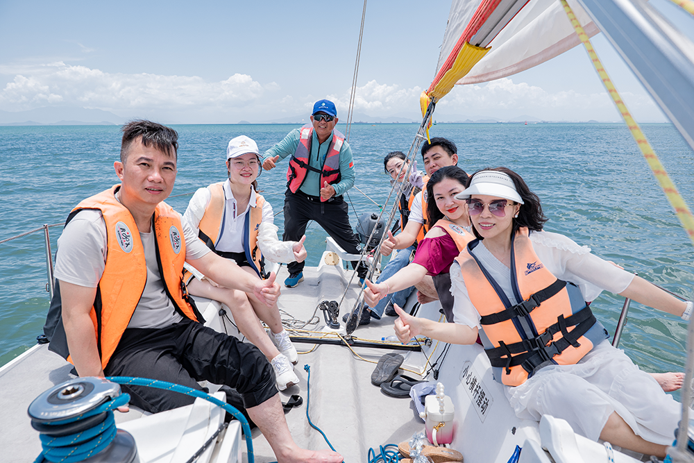 5月26日下午,一輛旅游大巴載著歡聲笑語前往惠州巽寮灣,經近3小時車程到達目的地,開始了為期兩天一夜的團建之旅。 當晚,在巽寮灣花園別墅進行燒烤轟趴活動。金勺子家人們團結協作,伴著習習的海風,升起獨一份的人間煙火,開啟不一樣的味蕾享受。夜幕逐漸降臨,喝酒、吃肉、K歌......他們忘卻了昔日煩惱,歡呼、吶喊、嬉鬧......共同沉浸在美好的夜晚里。 27日上午,集體享用早餐后,開展團建活動。通過《沙灘拔河》《沙灘龍舟競賽》等一個個有趣的拓展互動,提高了團結協作的默契,提升了集體榮譽感,讓一顆顆滾燙的心連接起來,讓金勺子團隊更有信念和力量。 27日下午,全體出發前往碼頭準備坐帆船出海。碼頭上空藍天白云,海風陣陣,遠眺萬里無邊,美不勝收,大家紛紛合影留念,記錄下心動的時刻。 坐在帆船上觀光,又是另一番體驗。有的家人們腳踏浪花朵朵,體驗速度與激情,有人眺望遠方,欣賞藍天、白云、波瀾大海。此時的海面上波光粼粼,與天上的朵朵白云相映生輝,偶爾風聲、吶喊聲、歡笑聲......在耳畔響起,讓人心曠神怡、倍感舒適,金勺子的家人們忍不住感慨,真不虛此行。 歡樂時光總是過得尤其快,無論多么不舍,金勺子家人們歷經短暫的相聚后又要奔赴戰場,但我們會帶著滿滿的回憶、勇氣與激情擁抱未來,齊心協力書寫新的篇章。