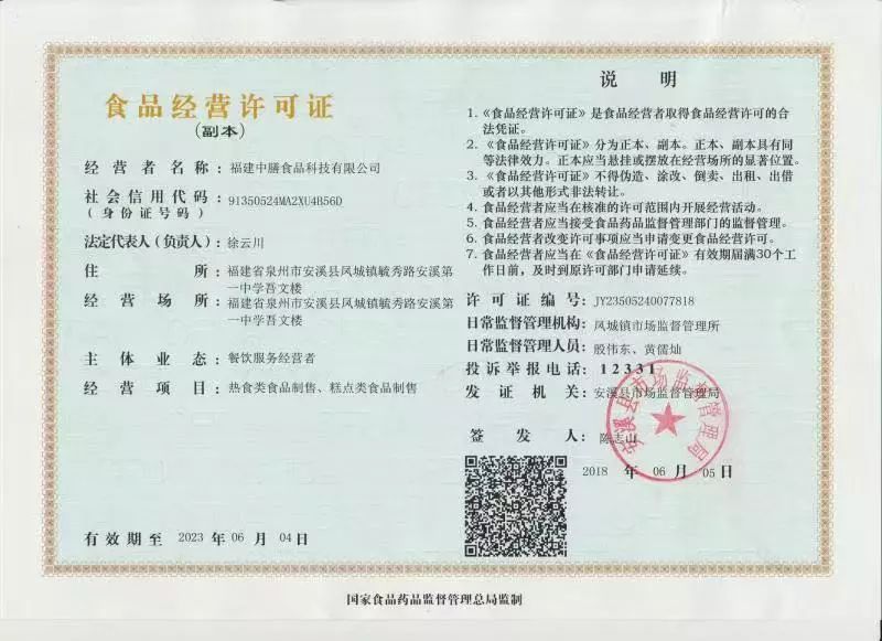 ▲食品經(jīng)營許可證