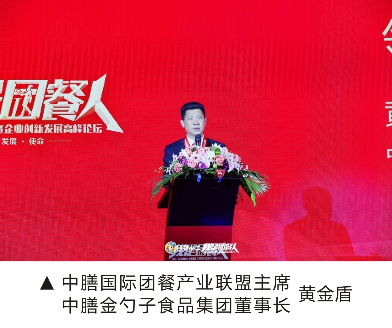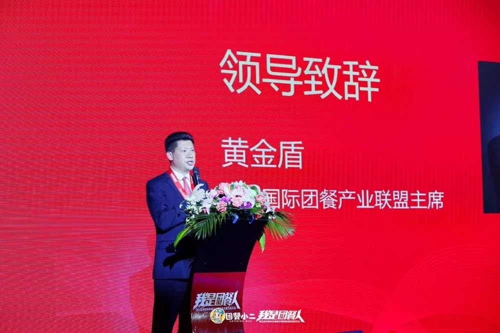 答謝晚宴上,中膳國際團餐產業聯盟主席、中膳金勺子食品集團董事長黃金盾,就團餐行業的責任、發展、使命做了總結致辭: