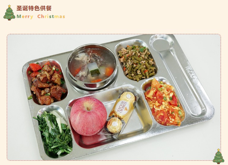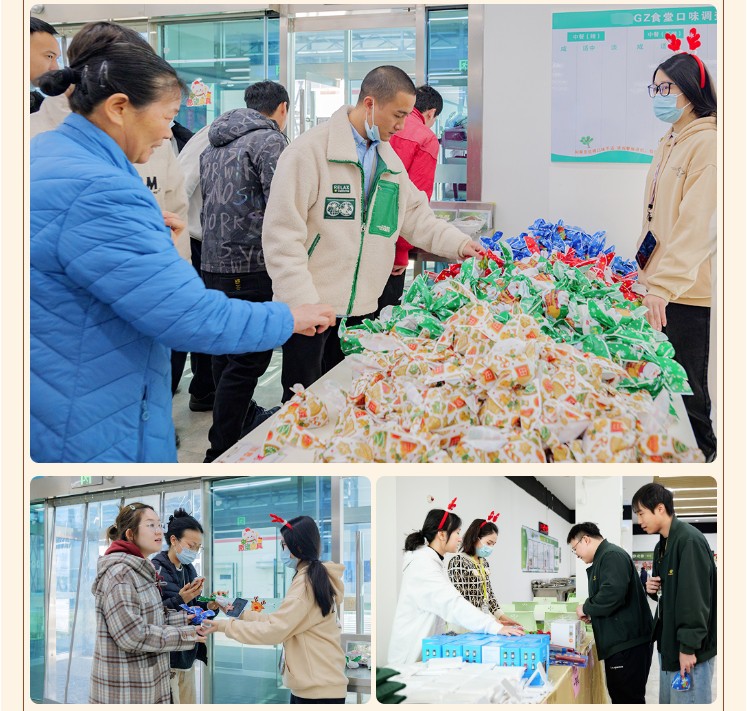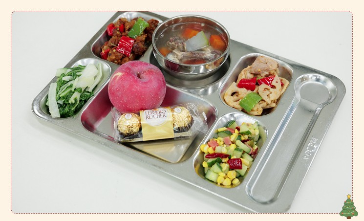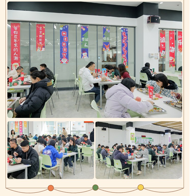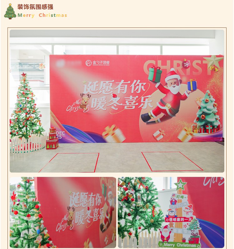 為增強活動的氛圍感和體驗感,食堂內部進行了精心布置。可愛的卡通海報、馴鹿的場景、豐富的禮品、動聽的音樂、各種節日特色供餐共同治愈焦慮填滿幸福感,讓員工感受到金勺子團隊的服務熱情。