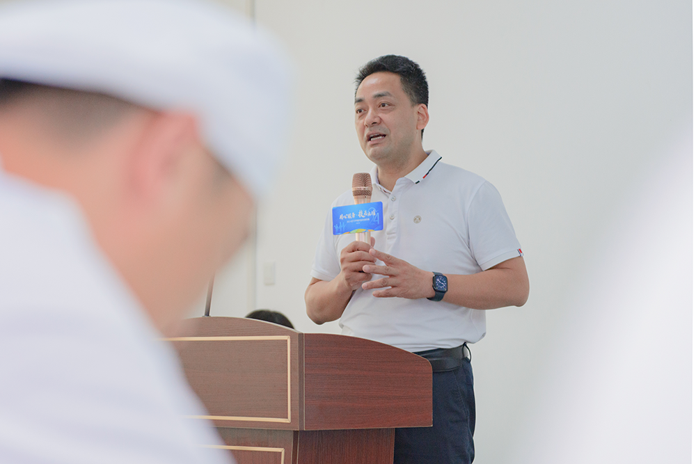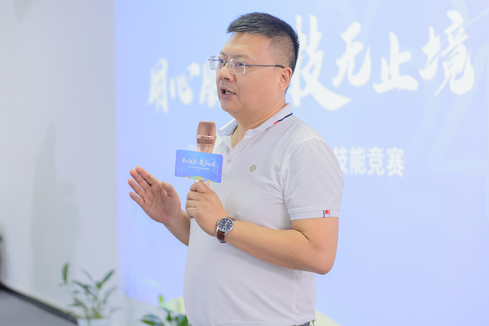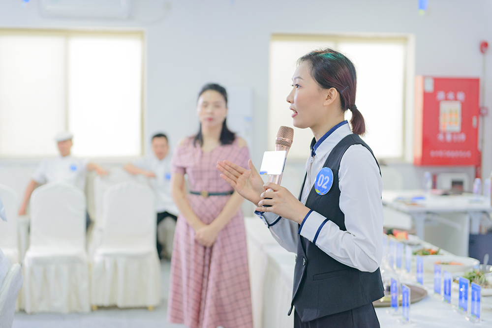 上午,活動在一場充滿激情和鼓勵(lì)的領(lǐng)導(dǎo)致辭中拉開序幕。金勺子食品集團(tuán)副總裁徐煥華在致辭中強(qiáng)調(diào)了服務(wù)業(yè)的重要性,以及對本次競賽的期待和祝愿。他提到,服務(wù)業(yè)是人與人溝通的橋梁,是傳遞溫暖和關(guān)愛的平臺。希望每一位參賽者都能以用心服務(wù)為宗旨,追求技無止境的專業(yè)高度。
