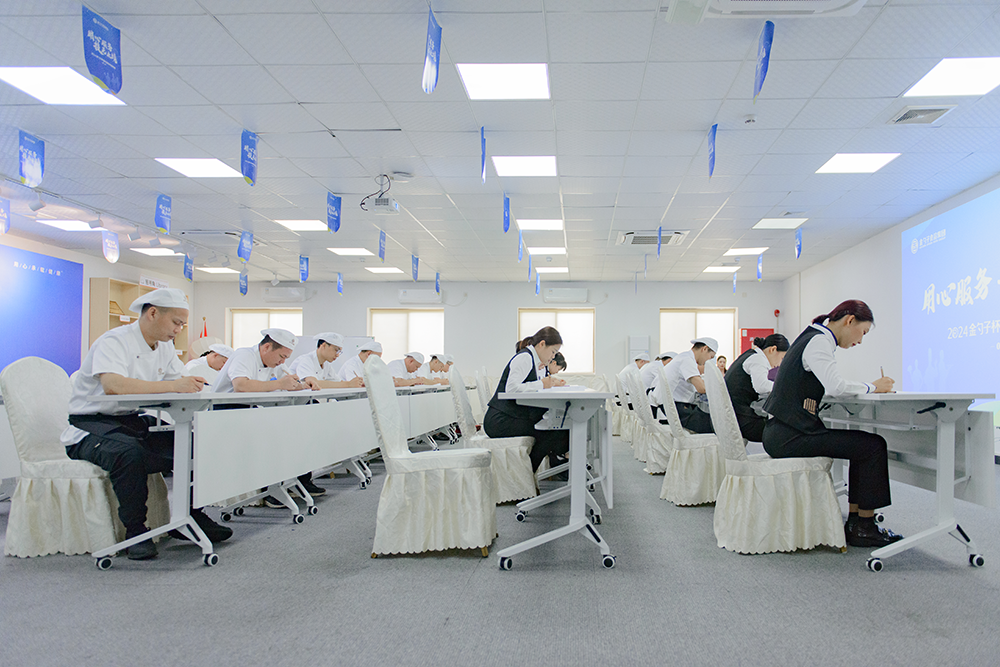 領(lǐng)導(dǎo)致辭后,餐飲服務(wù)知識競賽筆試正式開始。參賽者們沉著冷靜,認(rèn)真思考,展現(xiàn)了豐富的專業(yè)知識。這是一場對知識儲備和應(yīng)變能力的考驗(yàn),每一位參賽者都用自己扎實(shí)的專業(yè)知識為自己贏得了寶貴的分?jǐn)?shù)。