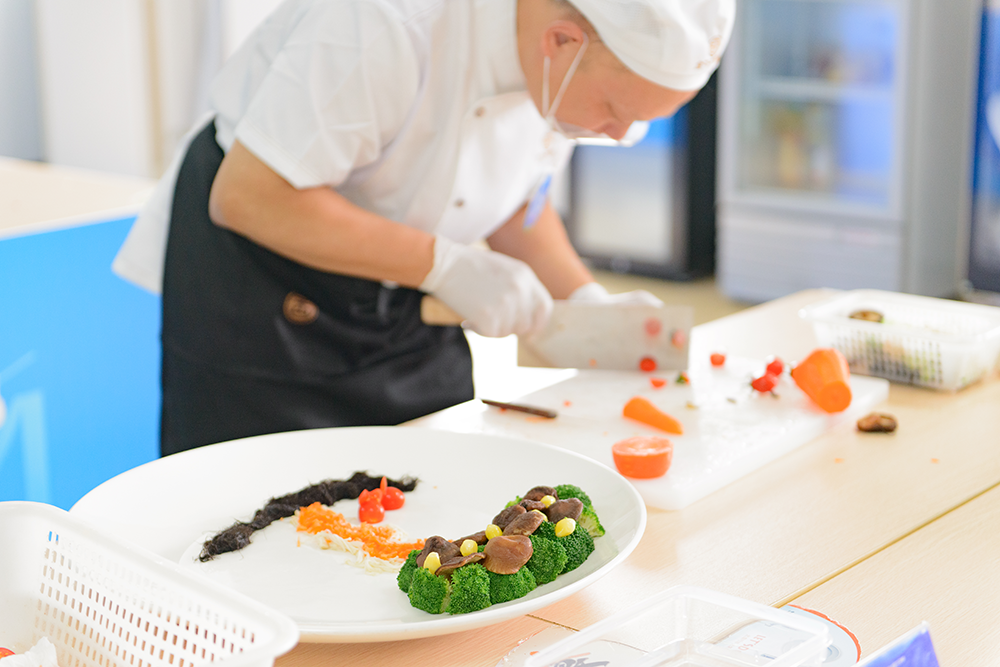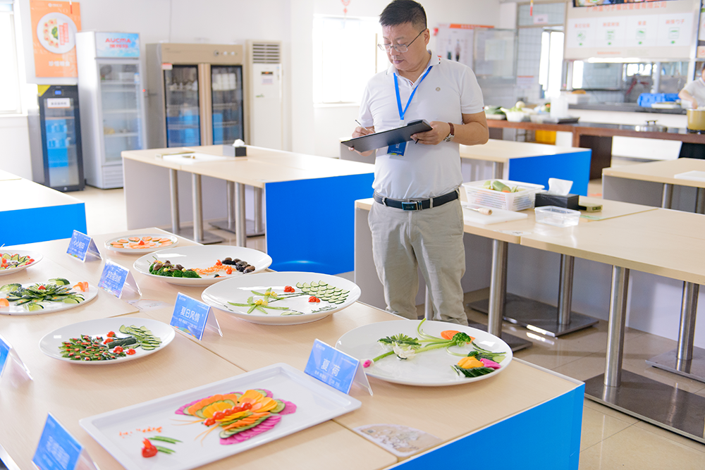 筆試結(jié)束后,素菜拼盤競賽更加精彩紛呈。素菜拼盤比賽現(xiàn)場,參賽者們巧手翻飛,色彩豐富的蔬菜在他們的手中變成了一件件精美的藝術(shù)品。每一份拼盤都講述著廚師們對美食的熱愛,對生活的理解。