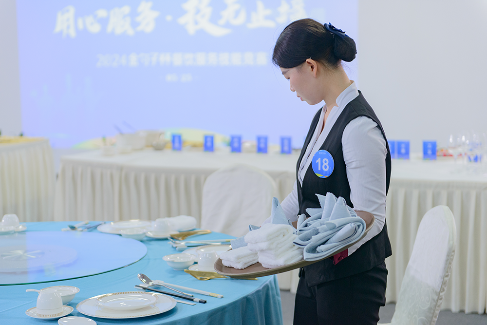 在最后的包房接待服務(wù)技能競賽中,參賽者們用熱情的微笑,專業(yè)的禮儀,細(xì)致的服務(wù)贏得了評委們的贊許。這是一場對服務(wù)態(tài)度和服務(wù)技巧的雙重考驗(yàn),每一位參賽者都展現(xiàn)了自己最佳的狀態(tài)。