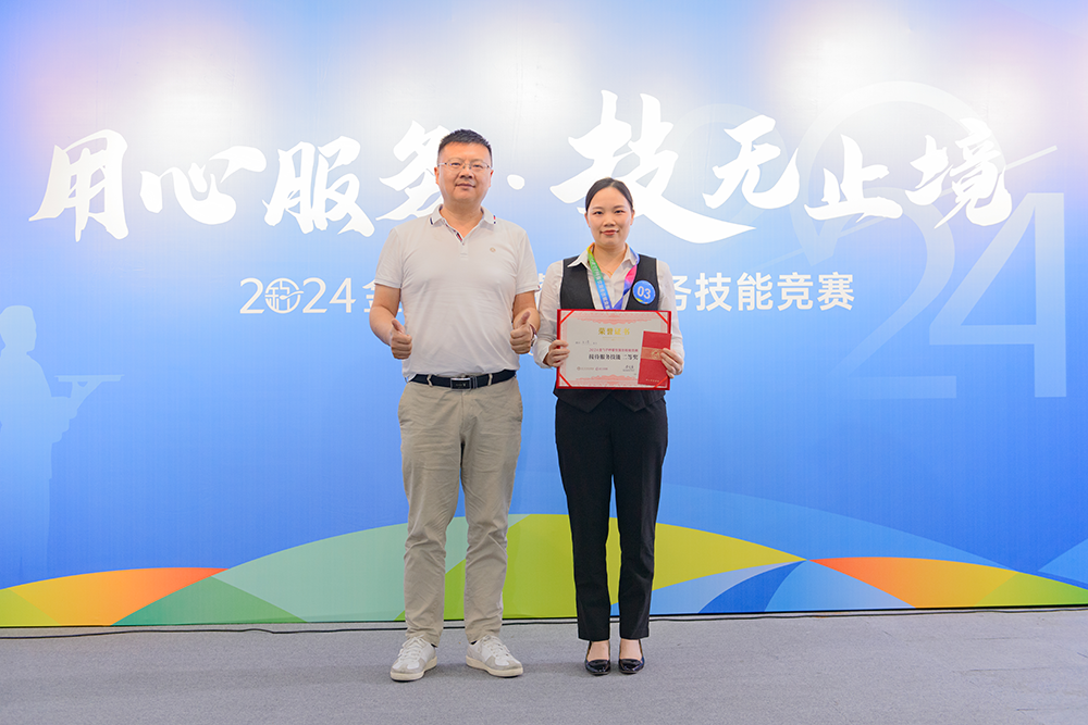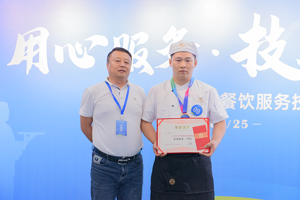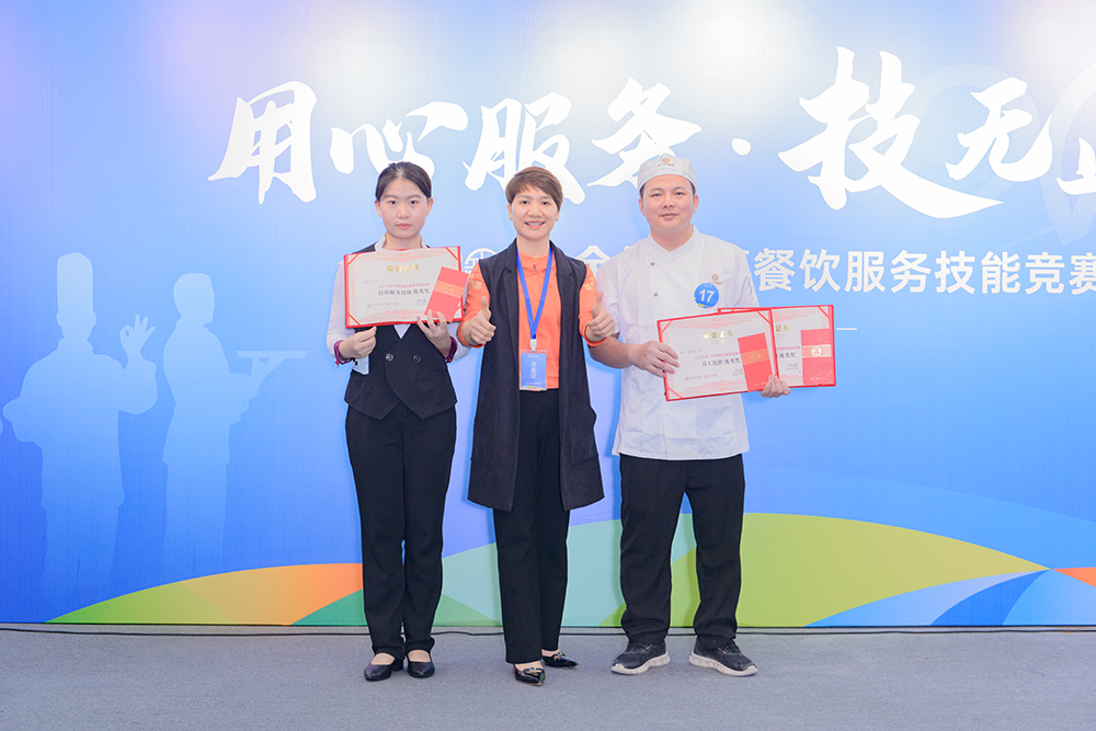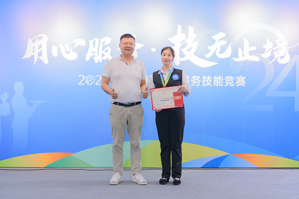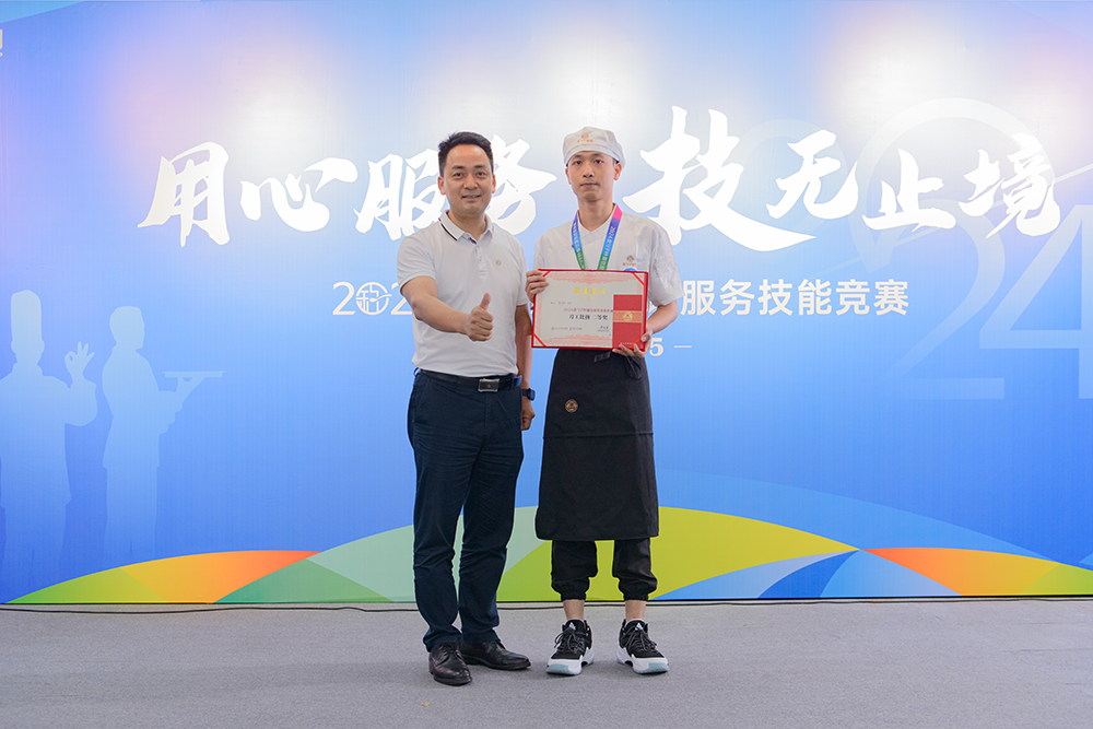 用心服務(wù),技無止境!巔峰對決,各顯神通!最后,2024金勺子杯餐飲服務(wù)技能競賽在緊張而激動的頒獎儀式中圓滿結(jié)束。獲獎?wù)邆兪峙鯓s耀,臉上洋溢著自信和喜悅。這是對他們的肯定,也是對他們未來的鼓勵(lì)。